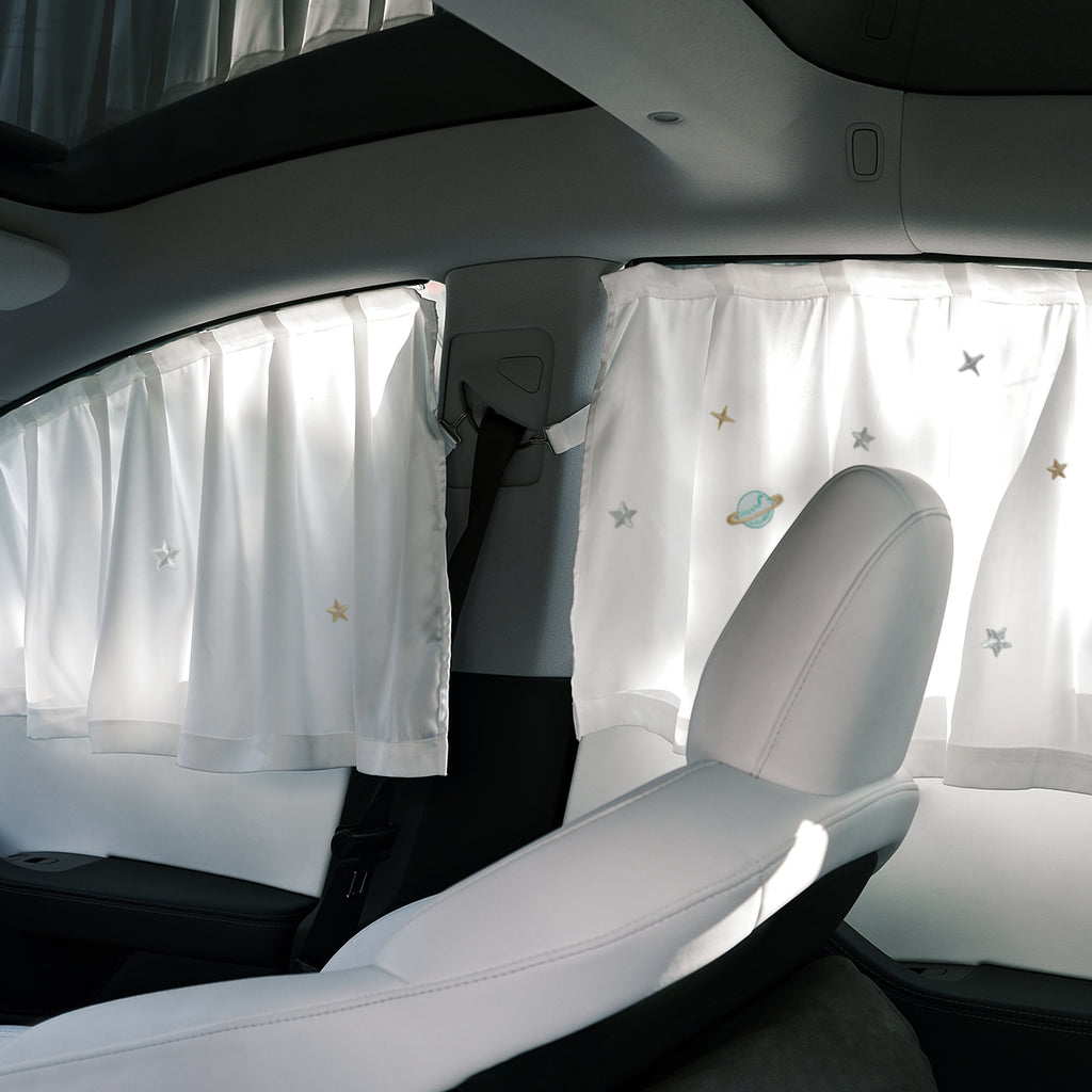Adopts environmentally friendly fabric, through the non-destructive and glue-free guide rail patented design, brings you the side curtains suitable for Tesla, effectively preventing ultraviolet rays in Tesla vehicles and better protecting the privacy of the car.