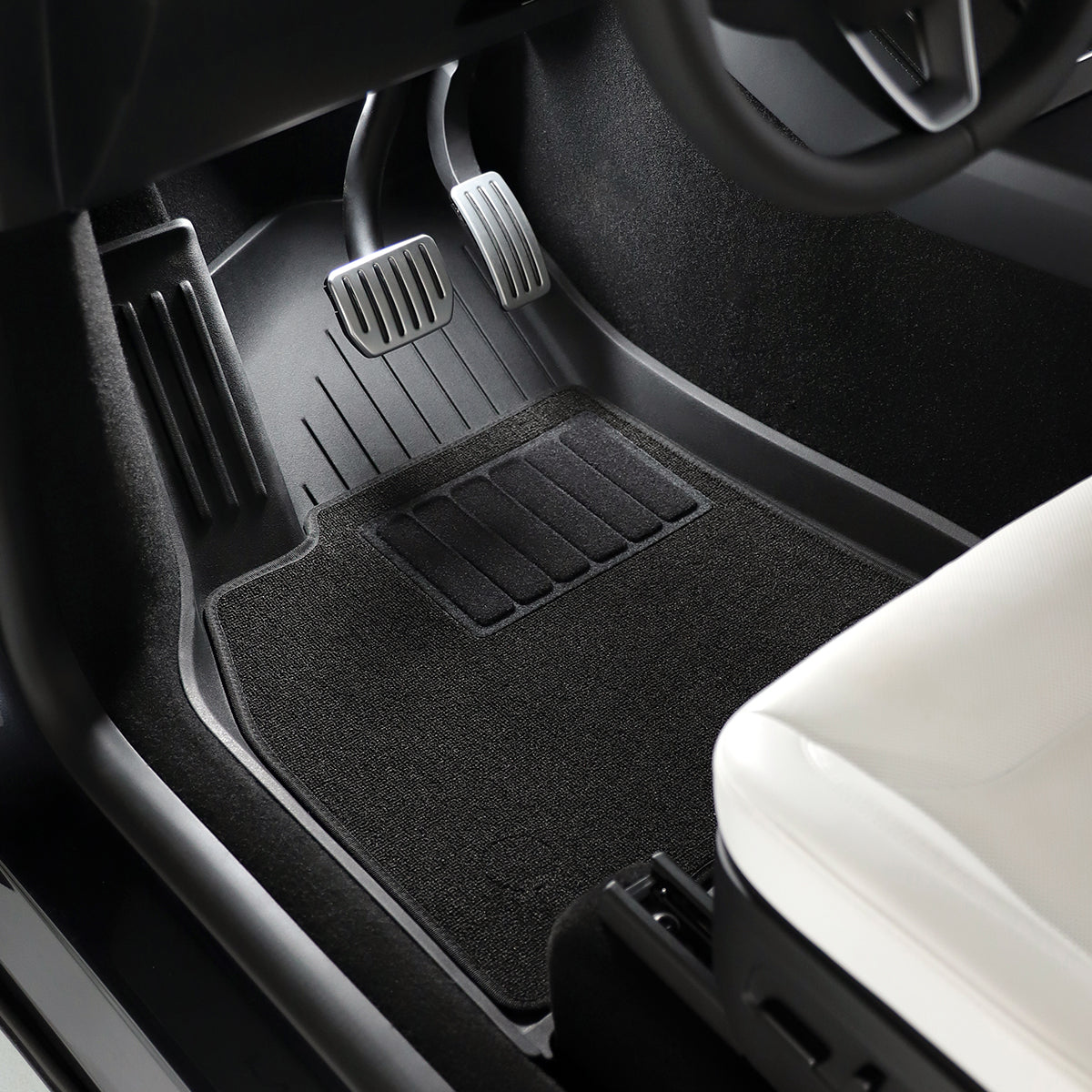 Dual Layer All-Weather Interior Liners(dual-layer) are custom-made for the Tesla Model Y Juniper 2025+. The All-Weather Dual-layer Interior Liners feature a removable woven carpet mat for comfort and easy cleaning. The vertical walls provide maximum protection to the foot-well carpet. The bottom layer is durable TPE with a strong core for extreme protection and coverage. Our liners are made from odorless, anti-corrosion thermoplastic elastomer for all-weather comfort and durability.