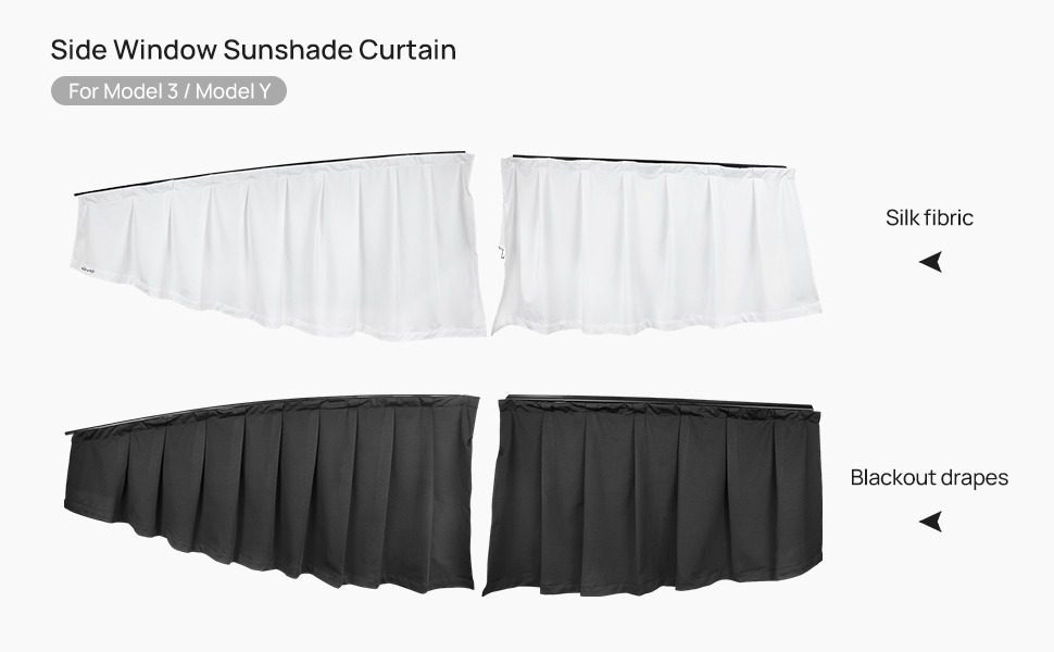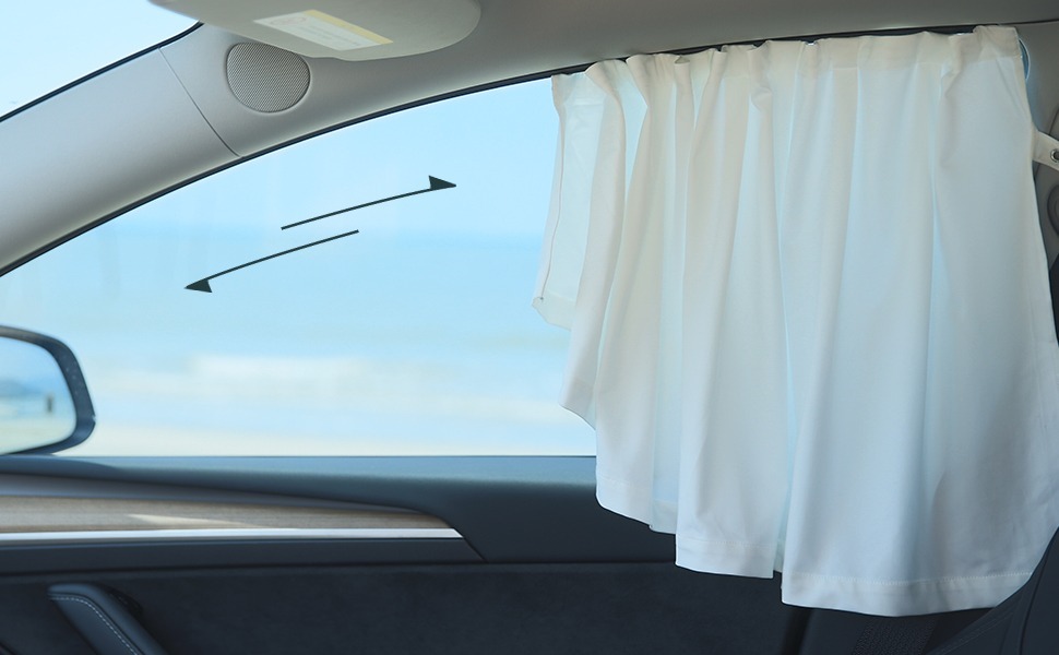 Adopts environmentally friendly fabric, through the non-destructive and glue-free guide rail patented design, brings you the side curtains suitable for Tesla, effectively preventing ultraviolet rays in Tesla vehicles and better protecting the privacy of the car.