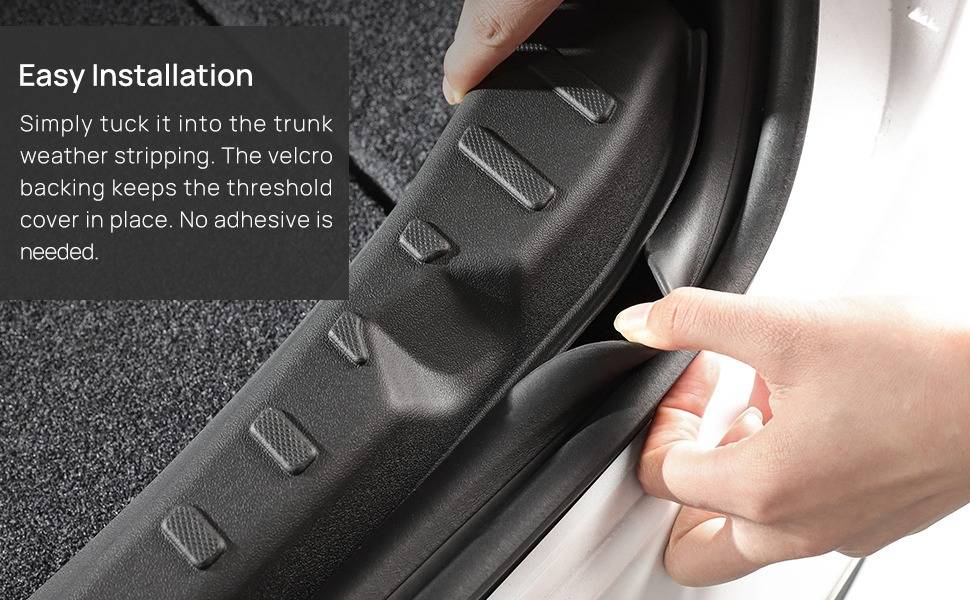 ·【Easy Installation】Simply tuck it into the trunk weather stripping. The velcro backing keeps the threshold cover in place. No adhesive is needed