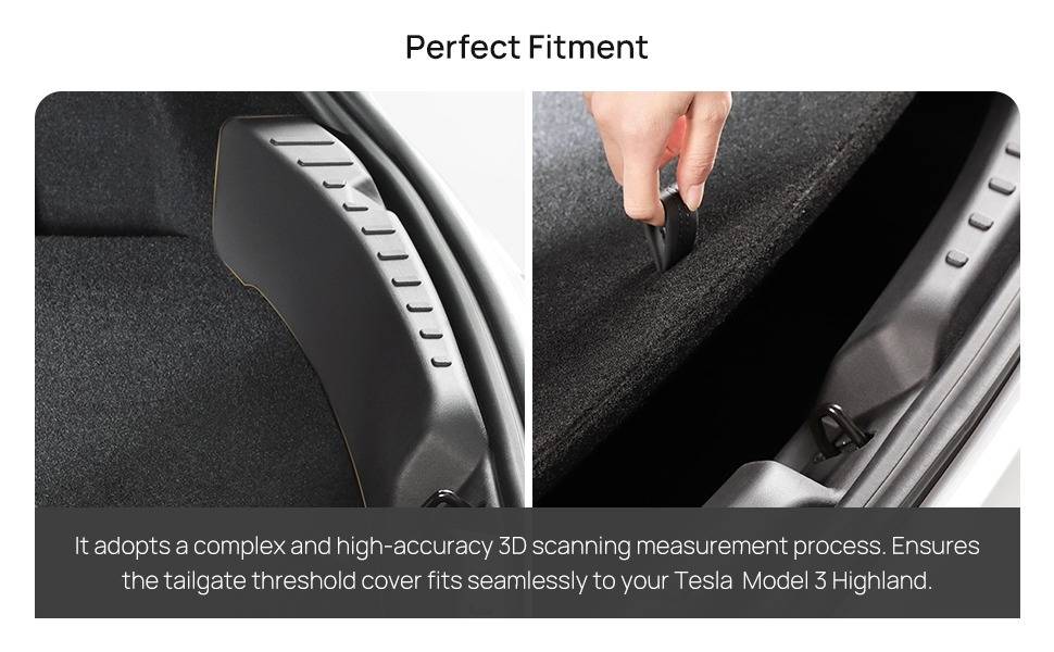 ·【Perfect Fitment】It adopts a complex and high-accuracy 3D scanning measurement process. Ensures the tailgate threshold cover fits seamlessly to your Tesla Model 3 Highland